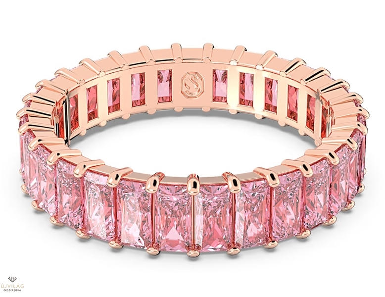 A kisméretű Matrix gyűrű megmunkálása hihetetlen részletességű. A rózsaarany árnyalatú bevonatos foglalat tökéletes alap a gyönyörű baguette-hercegnő metszésű rózsaszín kövekből alkotott körhöz. A kristályokat kecsesen megtartó prong foglalattal gyönyörű színvilágot alkot. Az elegáns gyűrűt réteges viseléshez terveztük, így többféle kombinációban hordhatja különleges alkalmakra.