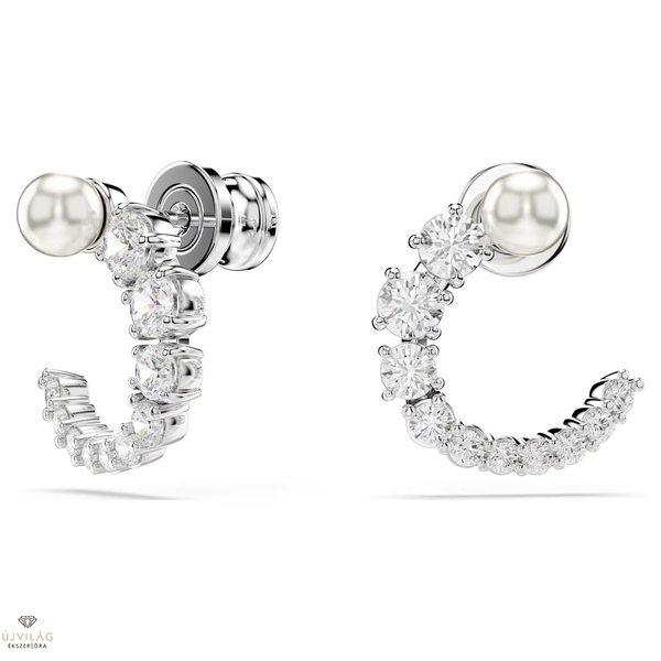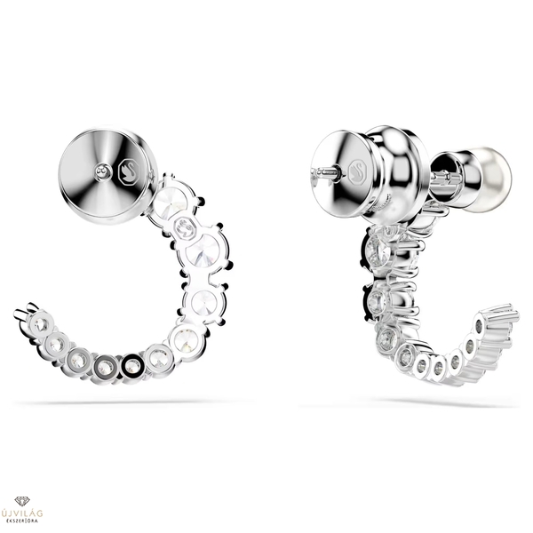 Ez a bedugós fülbevaló minden egyes részletéből szépséget sugároz. A ródiumbevonatú ékszert nyitott gyűrű alakban átlátszó Swarovski Zirconia kristályok díszítik kisebb és nagyobb változatban, a tetejét pedig egy fehér Swarovski kristálygyöngy zárja le. A hozzáillő Matrix medállal párosítva a feltűnő hatás garantált. Méret: 1.4 x 1.3 cm.