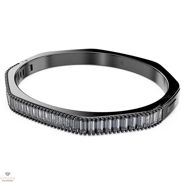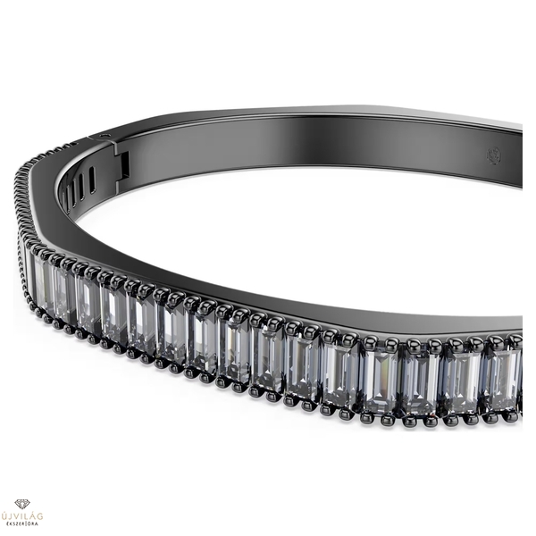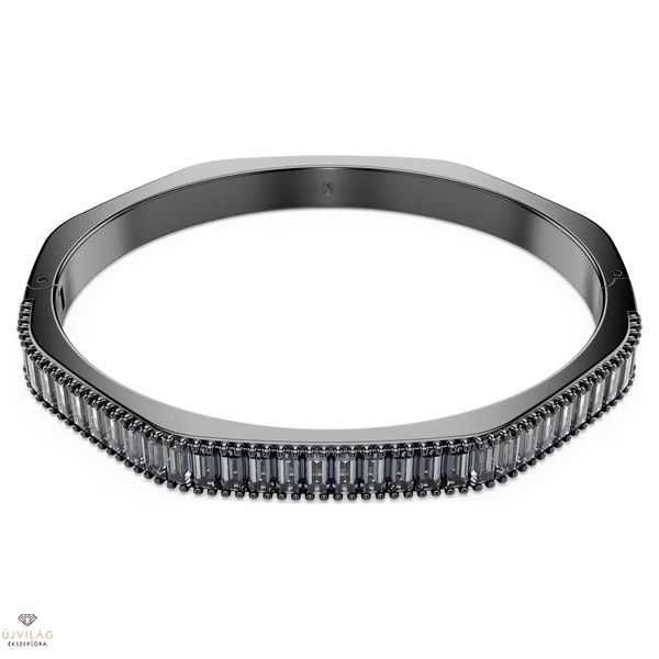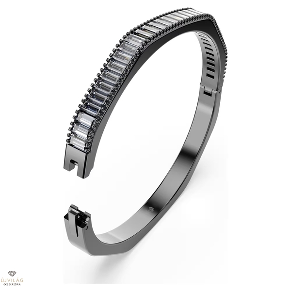 Ébressz álmokat a mindennapokban ezzel az elképesztően káprázatos Matrix karpereccel. A ruténiumbevonatú ékszert a Swarovskira jellemző nyolcszög alakú forma jellemzi, amely vízszintesen elhelyezett, szürke, baguette metszésű Swarovski Zirconia kövekkel van díszítve. Tökéletes választás a hozzáillő Matrix karperecekhez. Mélyen árnyalt stílus, hogy kifejezhesd legelegánsabb személyiségedet. Hossz: 16.1 cm; Szélesség: 0.6 cm; Belső átmérő: 5.5 x 4.7 cm.