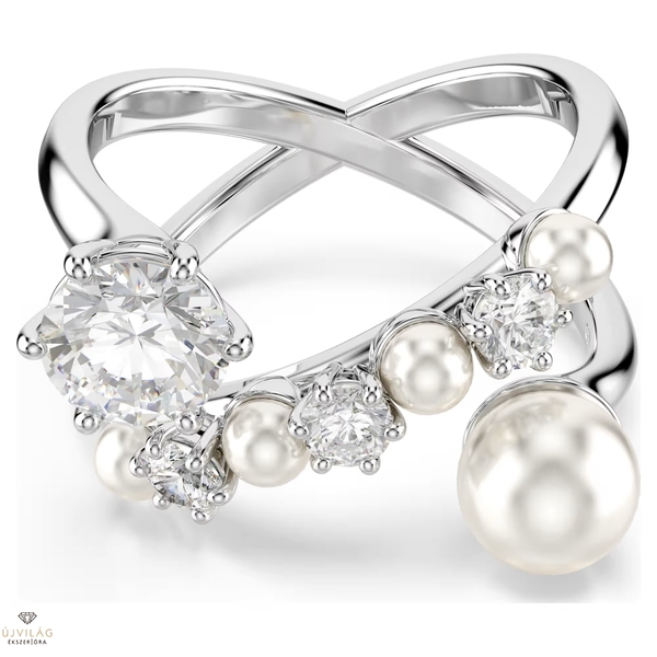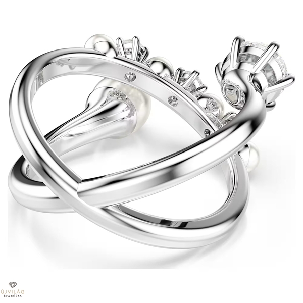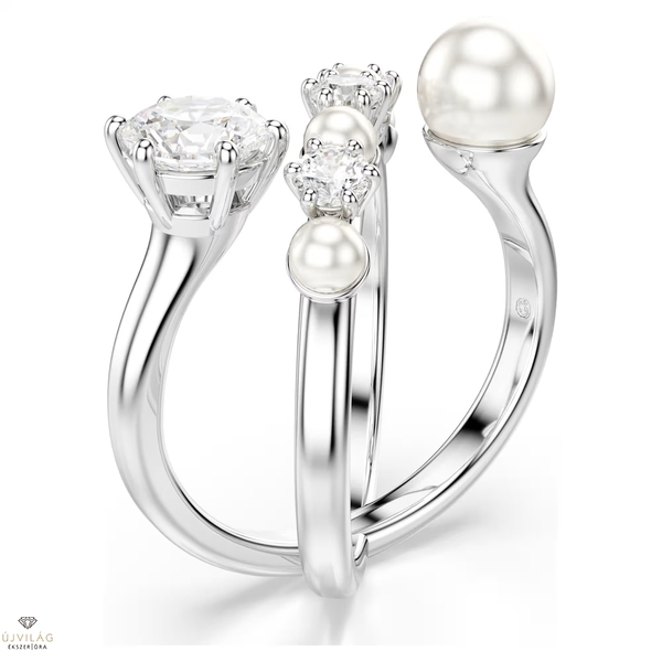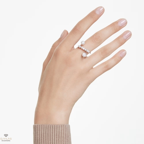 A modern és a klasszikus stílus tökéletes egyensúlyát megteremtve, ez a Swarovski Matrix gyűrű az elegancia megtestesítője. A ródiumbevonatú gyűrűt átlósan Swarovski Zirconia kövek és Swarovski-kristálygyöngyök díszítik, melyek közül a legnagyobbak szinte lebegnek a gyűrű igéző, nyitott kialakításának köszönhetően. Közelről nézve is gyönyörű, de a hozzáillő karkötővel vagy nyaklánccal párosítva még lenyűgözőbb hatást kelt.