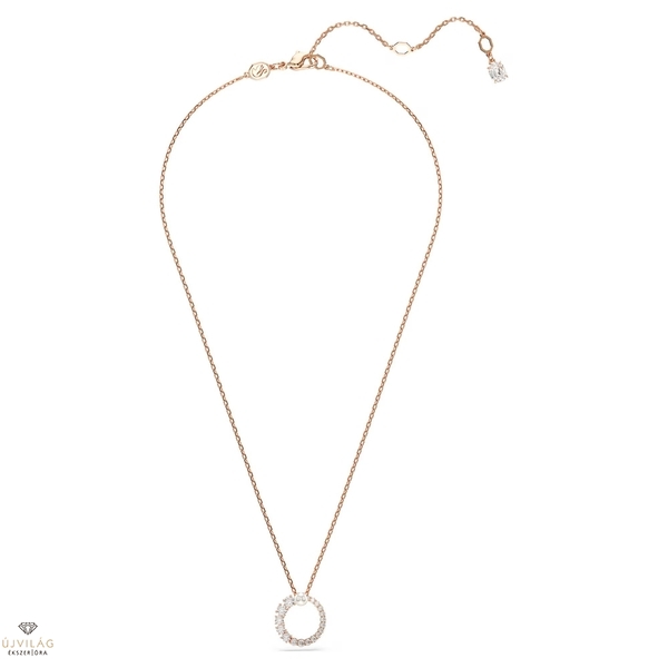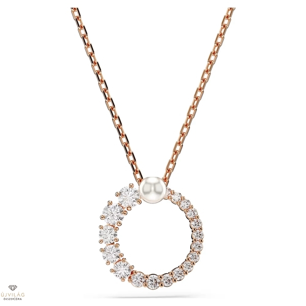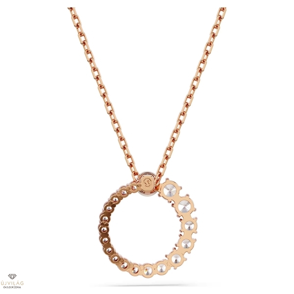A kifinomult forma és a modern részletek találkozásából született Matrix medál eleganciája vonzza a tekintetet. A finom láncon függő, rózsaarany árnyalatú ékszert gyűrűalakban elrendezett, kisebb-nagyobb méretű, átlátszó Swarovski Zirconia kristályok díszítik, a közepén pedig egy látványos, fehér Swarovski kristálygyöngy tündököl. A legjobban egyszínű öltözékkel viselve érvényesül. Hossz (minimum - maximum): 38 - 45 cm. Minta mérete: 1.7 x 1.6 cm.