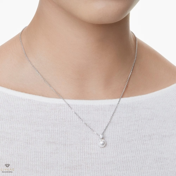 A finom kidolgozású Matrix medál szépsége az egyszerűségében rejlik. Az elegáns láncon függő, ródiumbevonatú ékszert egyetlen, fehér Swarovski kristálygyöngy és egy körmetszésű Swarovski Zirconia kő díszíti. A tündöklő luxus tökéletes megtestesítője, amely remekül párosítható a Matrix család többi darabjával. Hossz (minimum - maximum): 38 - 45 cm. Minta mérete: 1.3 x 0.8 cm.