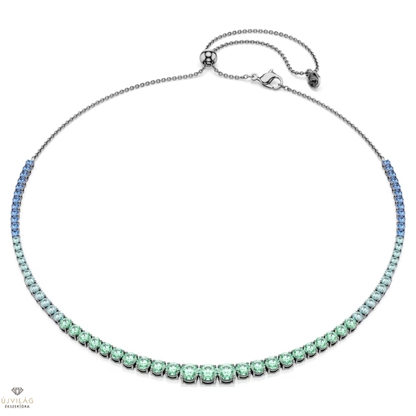 Az ikonikus Matrix nyakláncnak új dimenziót kölcsönző ruténiumbevonatú darab különböző méretű és árnyalatú kristályok színátmenetes sorát vonultatja fel. A kerek metszésű kristályokból álló ragyogó szál zöld és kék árnyalatokban pompázik, magával ragadó összhatást keltve. Ez a nyaklánc állítható a tökéletes illeszkedés érdekében, és a hozzáillő fülbevalóval párosítva teljessé teszi a megjelenést. Méretek: Hossz (minimum - maximum): 23 - 48 cm. Szélesség: 0.5 cm Méret: 23-48 cm