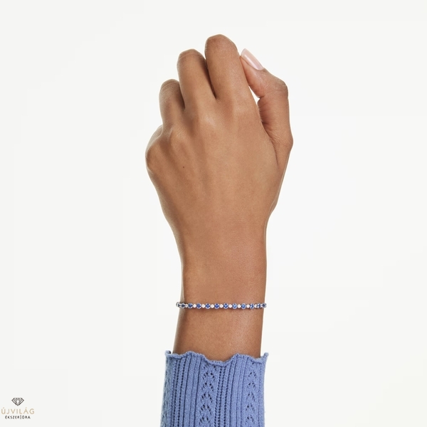Csempésszen egy csipetnyi csodát megjelenésébe a Matrix család elegáns, mégis figyelemfelkeltő Tennis karkötőjével. A formavilág sötétkék és átlátszó Swarovski Zirconia kövek káprázatos sorából áll, elegáns ródiumbevonattal. A csúsztatható zárral tökéletesen fog illeszkedni csuklójához. Méretek: Maximális hossz: 24 cm. Szélesség: 0.3 cm