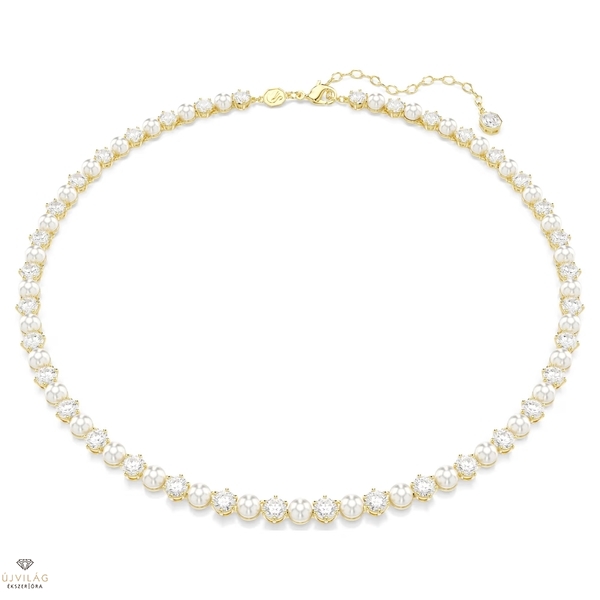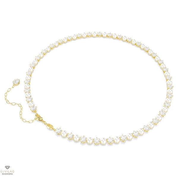 A mindennapi alapdarabot a luxus új szintjére emelő nyakéken felváltva sorakoznak a Swarovski Zirconia kövek és a Swarovski kristálygyöngyök, kifinomult arany tónusú bevonattal ellátott foglalatban. Ez a stílus szinte bármilyen öltözéket feldob, és a hozzáillő karkötővel kombinálva saját, személyes szettet alkothat. Hossz: 42 cm. Szélesség: 0.5 cm.