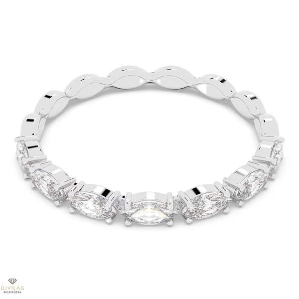 Találja meg az egyensúlyt a minimalista és a fényűző stílus között ezzel a csodaszép gyűrűvel! Az ékszer elülső felét csillogó marquise csiszolású kristályok díszítik, aminek köszönhetően a ródium bevonatú kiegészítő csodás hangsúlyt ad a hétköznapi viseleteknek. Jól néz ki más ékszerekkel együtt viselve, de akár külön is remekül hordható.