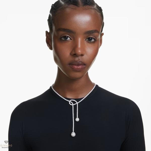 Egyedi hurkolt kialakításával ez a Matrix nyaklánc a modern sikk megtestesítője. A merev és rugalmas részeket ötvöző, ragyogó láncot teljes hosszában prong foglalatú, átlátszó Swarovski Zirconia kövek díszítik, a végeken pedig fehér Swarovski-kristálygyöngy fénylik. Tegye teljessé megjelenését hozzáillő Matrix fülbevalóval. Méretek: Hossz (minimum - maximum): 36 - 43 cm. Szélesség: 0.3 cm.