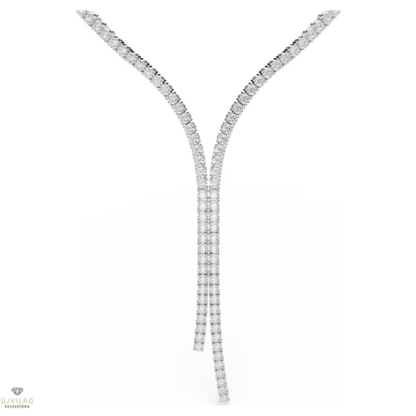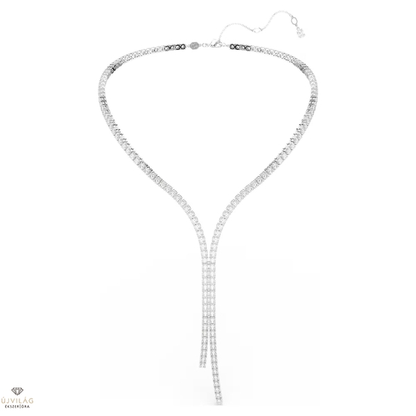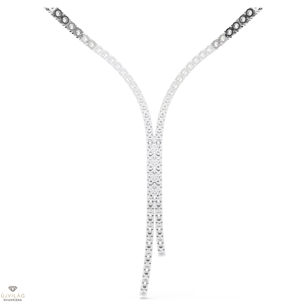 A Swarovski jellegzetes Matrix Tennis stílusát emeli ki ez a ragyogó Y-nyaklánc. A ródiumbevonattal ellátott, karabinerkapcsos ékszer drámai hatású, kerek metszésű, átlátszó Swarovski Zirconia kövek sorával öleli körül a nyakat, amelyek mindegyike prong foglalatba van helyezve. Ez a feltűnő ékszer intenzív ragyogásával minden öltözékhez tökéletes választás. Hossz (minimum - maximum): 36 - 43 cm. Szélesség: 0.4 cm.