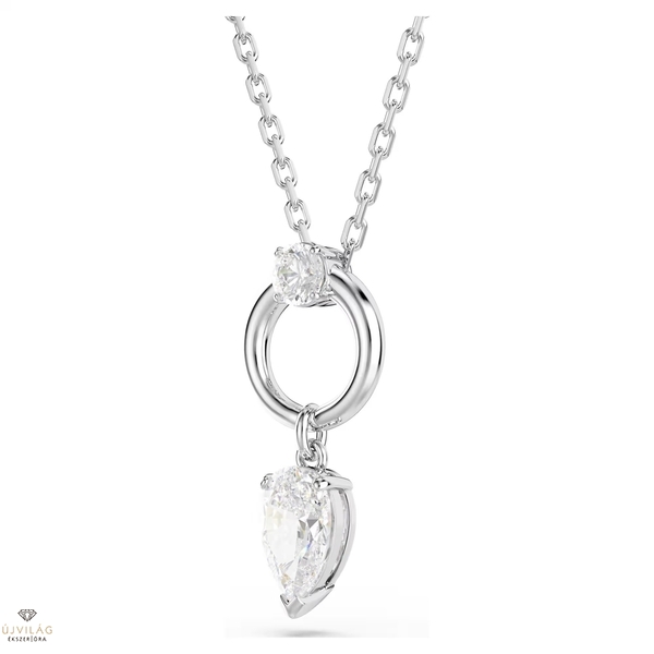 Ez a Mesmera medál a ragyogást és a kifinomultságot ötvözi, így egy figyelemfelkeltő, mindennapi ékszert alkot. A csillogó motívum egy körte metszésű Swarovski Zirconia kristályt tartalmaz, amely egy fényűző, ródiumbevonatú karikához kapcsolódik. Egy további kerek metszésű Swarovski Zirconia kristály található a közepén, míg a láncon található csúszó mechanizmus lehetővé teszi a medál könnyű beállítását a kívánt hosszúságra. Viselje a hozzáillő fülbevalókkal, hogy megalkothassa saját lenyűgöző szettjét. Méretek:Hossz (minimum - maximum): 38 - 45 cm. Minta mérete: 2.2 x 1 cm