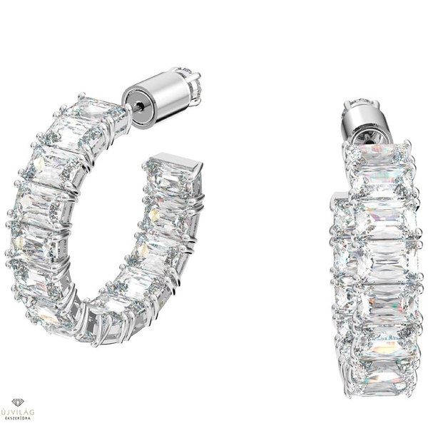 Klasszikus karika dizájn káprázatos csavarral – ez elegáns fülbevalót szabályos sorba rendezett, nyolszögmetszésű kövek díszítik, amelyeket finom, ródiumbevonatú foglalat tart. Hintsen egy csipetnyi hétköznapi varázslatot a megjelenésére – napközben vagy este. A fülbevaló a Millenia ékszercsalád tagja, amelyet Giovanna Engelbert kreatív igazgató tervezett a Collection III számára. Hossz: 2.7 cm Szélesség: 0.7 cm