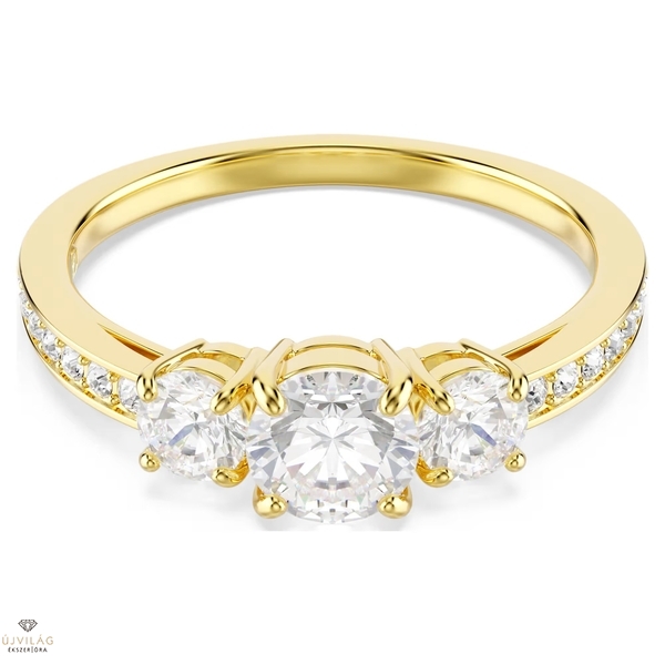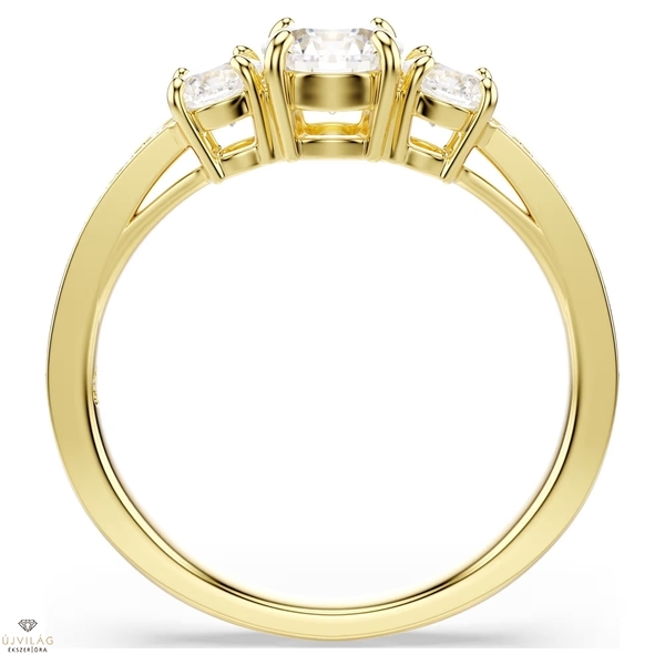 A Stilla ékszercsalád minden alkalomra tökéletes, letisztult eleganciát sugárzó darabokat kínál. Ez a klasszikus gyűrű új szintre emeli a ragyogást a szár mentén elhelyezett átlátszó kristályokkal és a három precíziós metszésű Swarovski Zirconia kővel, amelyeket ragyogó, aranytónusú bevonat egészít ki. Egy gyönyörű ékszer a mindennapokra, amely könnyedén kombinálható az ékszercsalád többi darabjával.