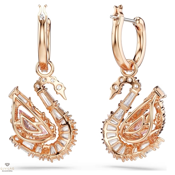 Ölelje át a Swarovski ikonikus hattyújának finom mozgását ezzel a jelképes fülbevalóval. A csillogó pavéval díszített mini karikára rögzített kecses sziluettek mindegyikét rózsaarany-tónusú bevonat borítja, és átlátszó Swarovski Zirconia kristályok, valamint egy hattyútest formájú, rózsaszín mozgóköves díszítés teszi teljessé. Ez a ragyogó részlet a színek és a fény végtelen mozgását kelti életre, és minden pillanatban csillogóvá varázsolja stílusát. Méret: 1.7 x 1.4 cm