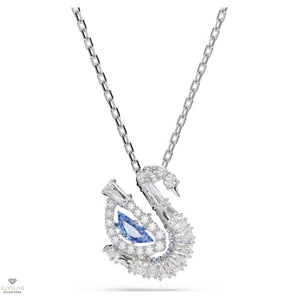 Ez a medál a Swarovski ikonikus hattyújának finom mozgását jeleníti meg. A ródiumbevonatú láncon függő központi motívum elegáns sziluettet ad, amelyet átlátszó Swarovski Zirconia kristályok és egy hattyútest formájú kék mozgóköves kristály díszít. Ez a ragyogó részlet a színek és a fény végtelen mozgását kelti életre, és minden pillanatban csillogóvá varázsolja stílusát. Méretek: Hossz (minimum - maximum): 38 - 48 cm. Minta mérete: 1.7 x 1.4 cm