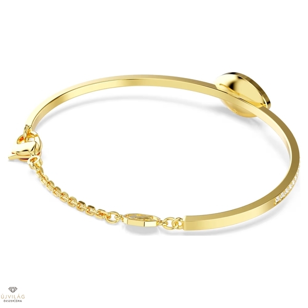 Ez a Symbolica karperec pozitív kisugárzást kölcsönöz. Az aranyszínű bevonattal készült ékszer pavé berakásos szárának közepén a gonosz szem átlátszó, kék és fekete kristálypavéval díszített, domború motívuma kapott helyet. A lazább zárszerkezet könnyű és kényelmes viseletet biztosít. Ez a darab minden nap megidézi a pozitív energiákat. Hossz: 17 cm. Belső átmérő: 5.9 x 4 cm. Minta mérete: 0.9 x 1.5 cm.