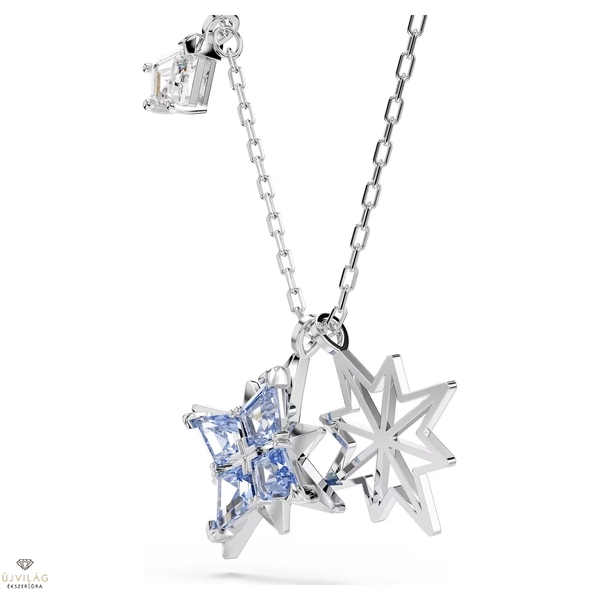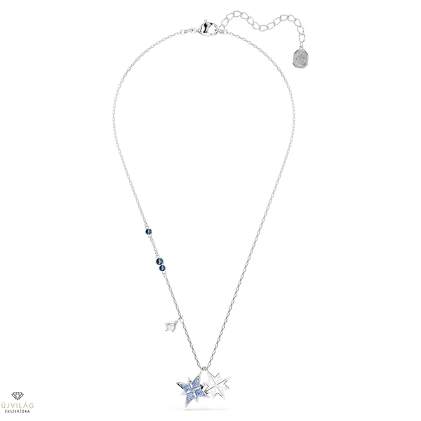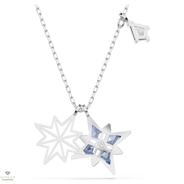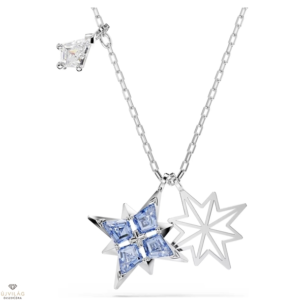Ezt a vagány és klasszikus medált a ragyogó éjszakai égbolt ihlette. A reményeket és álmokat szimbolizáló csillagmotívumokat tartalmazó, ródiumbevonatú kialakítás kék Swarovski Zirconia kővel kápráztat el, lenyűgöző sárkány alakú metszéssel. Tökéletes kiegészítő nappal vagy éjszaka, és eredeti ajándékötlet. Méretek: Hossz (minimum - maximum): 38 - 43 cm. Minta mérete: 1.9 x 1.6 cm