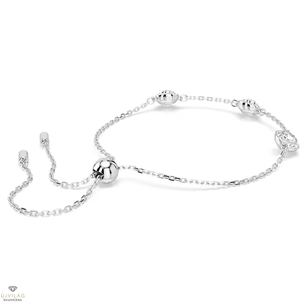 Ez az innovatív Swarovski karkötő a játékos sokoldalúság jegyében készült. A ródiumbevonatú lánc csúsztatható zárszerkezettel rendelkezik a könnyen állítható illeszkedés érdekében, és három kétoldalas motívum díszíti. Egyszerűen fordítsa meg a karkötőt a kerek metszésű kristályok más-más megjelenítéséhez. Kombinálja más Una Angelic darabokkal a tökéletes ragyogás érdekében. Méretek: Maximális hossz: 24 cm. Minta mérete: 0.8 x 1 cm