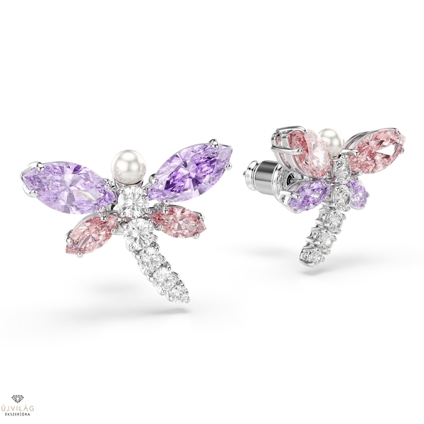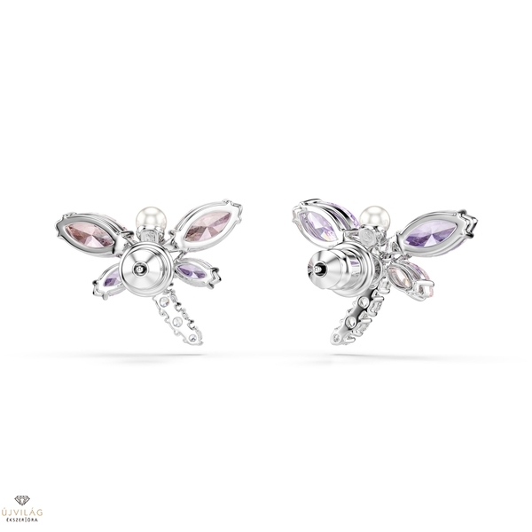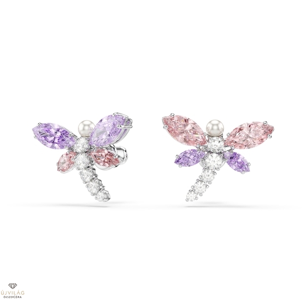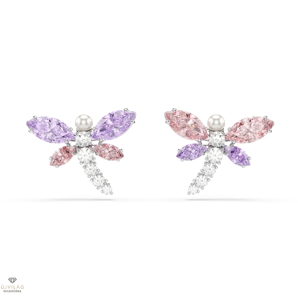 A Swarovski mesebeli kertjéből származó fülbevalók a szitakötő átalakuló erejének állítanak emléket. Minden ródiummal bevont fülbevaló tiszta Swarovski Zirconia kövekkel van kirakva, fején pedig egy-egy Swarovski Crystal Pearl gyöngy díszeleg. A pasztellszínekkel teli örömöt a szitakötő szárnyai nyújtanak, melyek rózsaszín és lila árnyalatokat mutatnak. Kifejező választás, amely könnyen kombinálható a szitakötő-sorozat többi darabjával.