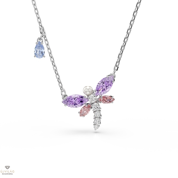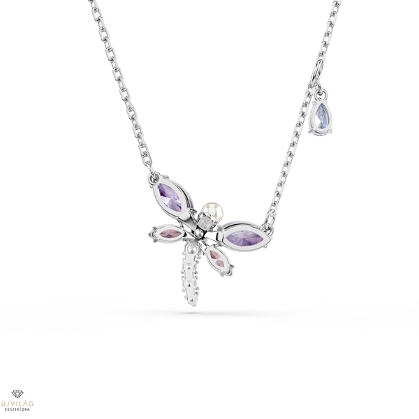 Az átalakulás szimbólumaként szolgáló, hangulatos szitakötő medál egy finom láncon lóg, középső motívuma pedig ródiummal bevont és tiszta Swarovski Zirconia kövekkel kirakott. A fején egyetlen Swarovski Crystal Pearl gyöngy található, míg a pasztellszínű szárnyak rózsaszín és lila árnyalatokat mutatnak, így gyönyörűen illeszkednek az ékszerkollekció többi szitakötő darabjához.