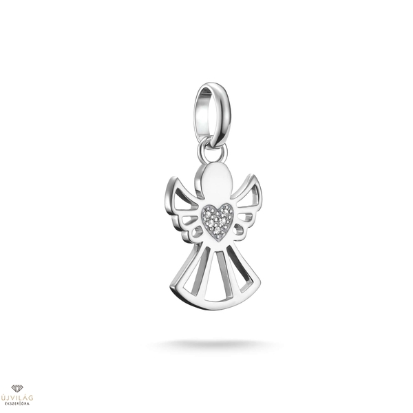 A szerelem őrzője: Ez a medál újrahasznosított 925-ös ezüstből készült. A finom angyal formájú, művészi kialakítású medál finom kivágásokkal és egy központi szív részlettel rendelkezik. A szívet csillogó fehér cirkóniakövek díszítik, amelyek gyönyörűen tükrözik a medál szimbolikus jelentését. Finom hurokjának köszönhetően minden nap kényelmesen viselhető. Stílusosan karkötőkhöz vagy nyakláncokhoz, és kombináld más charmokkal, hogy elmondhasd a saját történetedet a szeretetről és a védelemről.