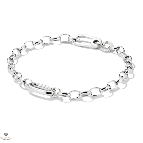 Engedje szabadjára kreativitását, vagy mesélje el történetét személyre szabott bájkombinációkkal. Ez a charm karkötő az Ön ideális társa. Kiváló minőségű, újrahasznosított 925-ös ezüstből készült, és Charm Club logógyűrűvel és karabinerrel ellátott biztonságos zárral rendelkezik. A közepén egy nagyobb, ovális alakú láncszem - a connect link - található, amely ideális a hurkolt charmok könnyed formázásához. A hagyományos láncszemek lehetővé teszik a karabinerekkel ellátott charmok rögzítését. Az eredmény? Egyedi ékszerkreációk, amelyek megörökítik emlékeit és tükrözik személyiségét. Méretek: Magasság: kb. 8,50 mm; Szélesség: kb. 16,50 mm; Vastagság: kb. 5,00 mm.