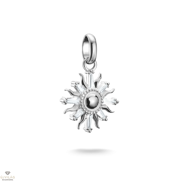 Engedd, hogy a nap minden nap ragyogjon neked ezzel a ragyogó bájjal. Kiváló minőségű, újrahasznosított 925-ös ezüstből készült, gyönyörűen kidolgozott napmintával és fehér baguette-csiszolású cirkóniakövekkel. Ezek kiemelik a medálból sugárzó napfényes ragyogást. A mindennapi viselet pozitív társa, finom hurokjának köszönhetően nyakláncra vagy karkötőre erősíthető. Ünnepelje meg a napsütéses pillanatokat, és kombinálja más charmokkal, hogy ékszereken keresztül mesélje el személyes történetét.