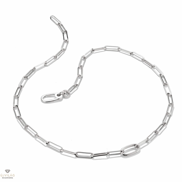 Elegáns és elegáns darab, sokoldalú stíluslehetőségekkel: Ez a bájos nyaklánc újrahasznosított 925-ös ezüstből készült, és elegáns, gemkapocs stílusú láncszemekkel van kialakítva. A közepén egy nagyobb ovális elem - a Connect Link - harmonikusan illeszkedik. Ez kinyílik, hogy a charmokat könnyen fel lehessen csatolni egy hurokkal. A gemkapcsos láncszemek rugalmas lehetőségeket kínálnak a karabinerrel ellátott charmok számára is. A nyaklánc 50 cm hosszú, és egy kiemelkedő karabinerrel és egy Charm Club logós gyűrűvel rendelkezik.