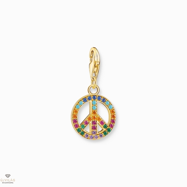 Adj esélyt a békének: A béke-szimbólumra emlékeztető bűbáj 925-ös serling ezüstből készült, és 18 karátos sárga arany bevonattal van bevonva. Kézzel, kék, zöld, türkiz, rózsaszín, narancs és lila színű drágakövekkel van beállítva. Homár csatjának köszönhetően a charm medál egyenként is hordható további Charm Club nyakláncokkal és karkötőkkel. Kifejező megjelenés, amely határozottságot ad, és újra és újra egyedi módon változtatható.