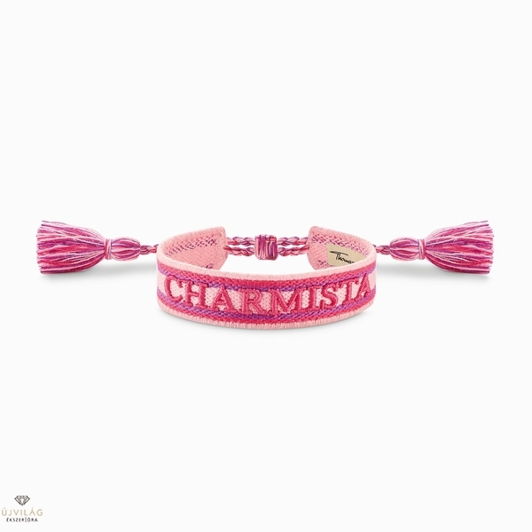 Charmista As We Are: ez a szőtt karkötő mindenki figyelmét magára vonzza élénk színeinek, mint a lágy rózsaszín, rózsaszín és lila, valamint a "CHARMISTA" dísznek köszönhetően. Mutassa meg, hogy a THOMAS SABO Charm Club közösségének tagja. Ezt a textil karkötőt a fesztivál karkötők ihlették, és csúszócsattal van ellátva. Ez utóbbinak köszönhetően a csuklójához állíthatja és igazíthatja a hosszát. A többszínű bojtok együtt lengenek, amikor kedvenc dalaira táncol. Méret: Szélesség kb. 15,00 mm.
