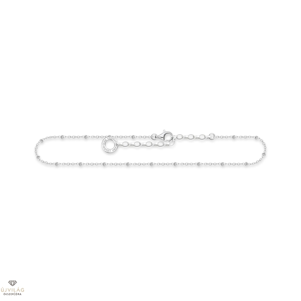 Bokalánc kis gyöngyökkel. 925 Sterling ezüstből készült. Állítható hosszúság homár csattal 22-27 cm között Ez a bokalánc kerek láncszerkezettel rendelkezik, kis gyöngyökkel, polírozott 925 sterling ezüstből. Ez a kiegészítő a kecses kivitelezésnek és a finom megjelenésnek köszönhetően abszolút vonzza a tekintetet a bokán – akár egyénileg viselve, akár további bokaláncokkal kombinálva. Ez az ékszer különböző hosszúságú homár csattal rögzíthető. A hosszabbító lánc hátulján a jellegzetes THOMAS SABO Charm Club logó található. Vastagság kb. 2,00 mm