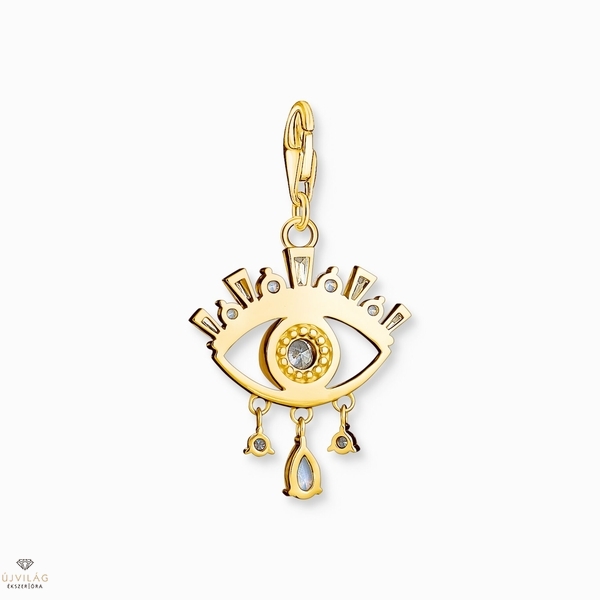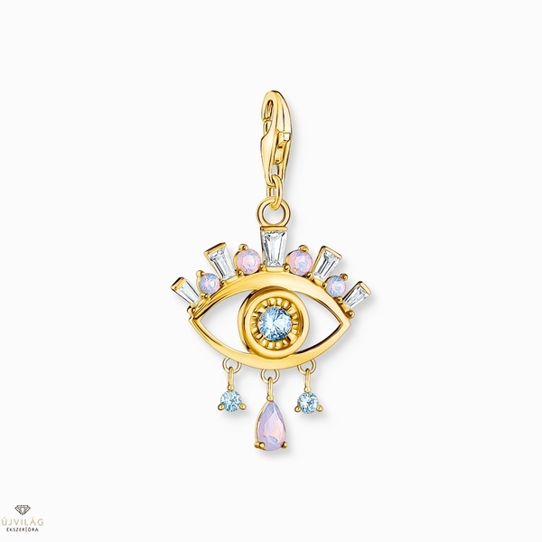 Lucky charm: a magas minőségű 925 sterling ezüstből készült, 18 karátos arany bevonatú Thomas Sabo arany szem charm színes, különböző méretű, kézzel válogatott kövekkel van díszítve. Ideális szerencsehozó ajándék. Viselje Charm Club nyakláncon vagy karkötőn, és kombinálja további charmokkal az igazán különleges megjelenésért. Magasság kb. 35,00 mm, Szélesség kb. 20,00 mm