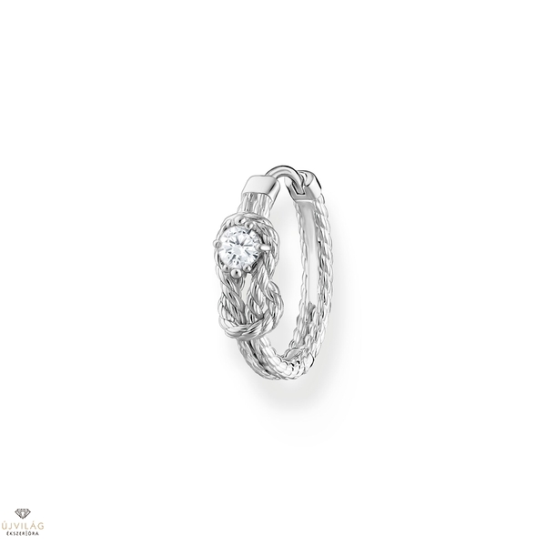 Álmodj, vitorlázz el: Az 1,8 cm átmérőjű egykarikás fülbevaló kiváló minőségű 925-ös sterling ezüstből készült. A finoman vésett vonalaknak és a stilizált tengerészcsomónak köszönhetően kettős zsinórmintával varázsol el. A hurokvége tökéletesen körülvesz egy csillogó fehér cirkónia követ. A tengerészet által ihletett dizájn a tenger varázsát idézi. Az egykarikás fülbevaló klipzárral rendelkezik, ami megkönnyíti és biztonságos felhelyezését. Akár külön-külön, akár fülbevalóként hordjuk egy második karikával, különleges kiemelést kölcsönöz fülének. Magasság kb. 18,00 mm, Szélesség kb. 6,00 mm