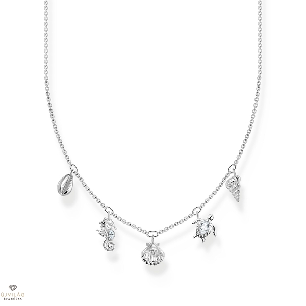 Víz alatti szerelem: A filigrán „óceán” nyaklánc öt részletes tengerlakóval rabul ejti. Három különböző tengeri kagyló, egy teknős és egy csikóhal finoman kidolgozott kiváló minőségű ezüstből készült, és fehér cirkónia kövekkel díszítik, amelyek csillogó fénypontjaként szolgálnak. A medálos nyaklánc háromlépcsős hosszabbítólánccal van ellátva, melyet CHARM CLUB logó díszít. Segítségével a medál nyaklánc hossza könnyen állítható 40-45 cm között. A vidám nyári megjelenés kötelező darabja. Magasság kb. 9,00 mm, Szélesség kb. 7,00 mm, Vastagság kb. 1,00 mm