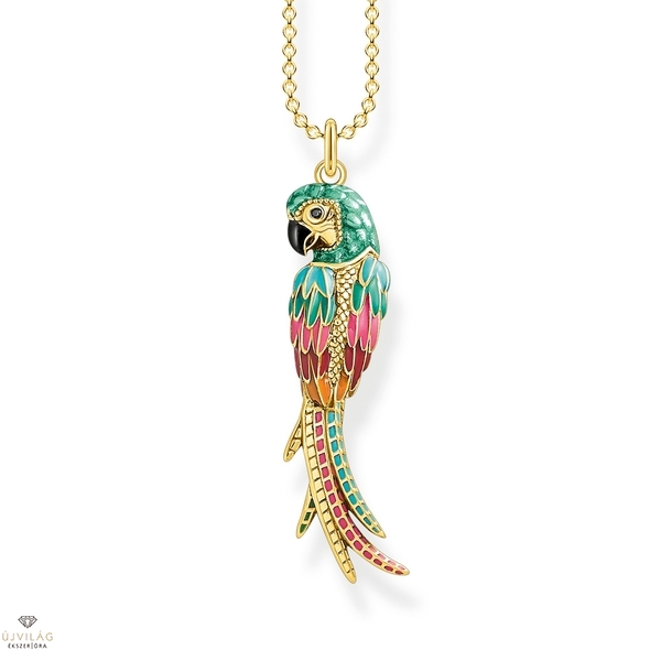 Tapasztalja meg személyes dzsungellázát – ezzel a nyaklánccal és papagáj formájú medáljával. A fej, a test és a tollak gondosan kézi munkával készültek, nagy odafigyeléssel a részletekre, és a természet mintájára tervezték. Különféle színű hidegzománccal és csillogó fekete cirkónia kövekkel díszítik. Az állítható horgonylánc és a medál 925 sterling ezüstből készült, és sárga-arany bevonattal van ellátva, ami kiemeli magas értéküket. Viselje ezt az arany nyakláncot a színes papagáj medáljával, és igazán szemet gyönyörködtető pillanatokat teremthet. Magasság kb. 3,80 cm, Szélesség kb. 1,10 cm, Vastagság kb. 0,11 cm