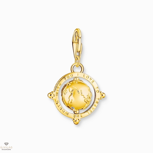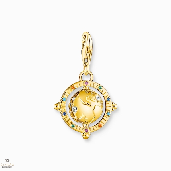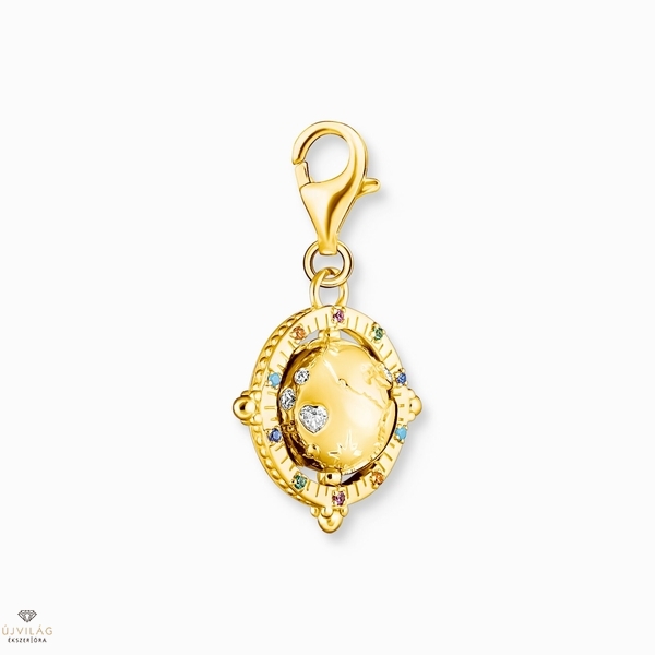 Holiday Vibes: a magas minőségű 925 sterling ezüstből készült, 18 karátos arany bevonatú Thomas Sabo földgömb charm vintage hangulatot idéz háromdimenziós alakjával. A világtérkép csiszolással és ragyogó, fehér cirkónia kövekkel lett díszítve, míg a részletgazdag kereten az „I LOVE TO TRAVEL THE WORLD WITH YOU” (szeretném körbe utazni a Világot veled) felirat olvasható a kézzel válogatott színes kövek mellett. Viselje Charm Club nyakláncon vagy karkötőn az utazás iránti szenvedélye kifejezésére, vagy egy vakáció emlékére. További charmokkal kombinálva igazán egyedi megjelenést érhet el. Magasság kb. 28,00 mm, Szélesség kb. 17,00 mm
