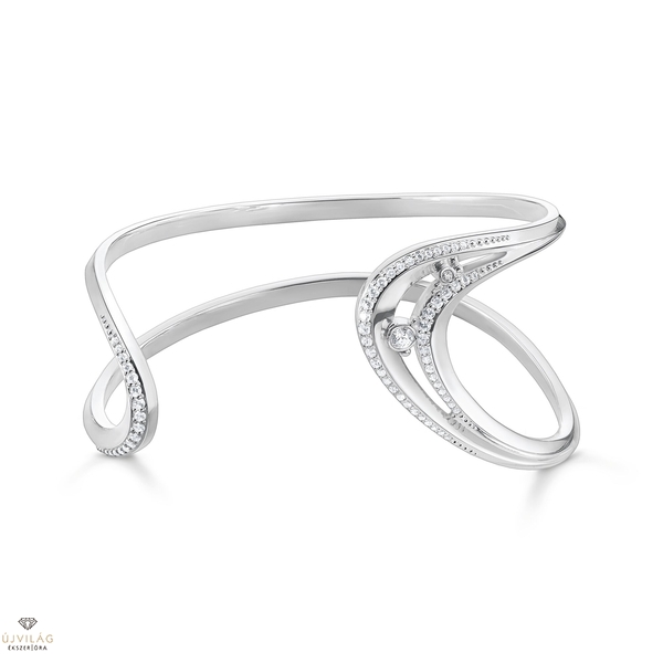 Lenyűgözött az óceán: Az erőteljes karperec 3D-s megjelenésével és kivágott dizájnjával inspirál hullámformájával. Pontosan kézi munkával készült, kiváló minőségű 925 Sterling ezüstből, és kiemelt ezüst pöttyökkel van kihangsúlyozva. A 60 kézzel beállított cirkónium kővel együtt az óceánok habzó hullámait szimbolizálják. A nyitott karperec ívelt, művészien megtervezett vonalai a tenger dinamikáját értelmezik. Kötelező ékszer minden nyári megjelenéshez. Magasság kb. 35,00 mm, Szélesség kb. 45,00 mm