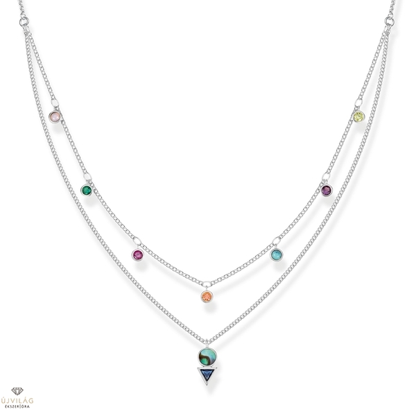 Utazás a paradicsomba: Kreatív, Boho ihletésű és egyszerre játékos, a kézzel készített, kétsoros és állítható hosszúságú nyaklánc a színek, formák és kulturális hatások új keverékét jelenti a THOMAS SABO dizájn nyelvén. A színes kövek harmonikus változatossága különösen fényesen ragyog a napon. Légy színes – légy boldog – légy szabad. Utazás a paradicsomba: Kreatív, Boho ihletésű és egyszerre játékos, a kézzel készített, kétsoros és állítható hosszúságú nyaklánc a színek, formák és kulturális hatások új keverékét jelenti a Utazás a paradicsomba: Kreatív, Boho ihletésű és egyszerre játékos, a kézzel készített, kétsoros és állítható hosszúságú nyaklánc a színek, formák és kulturális hatások új keverékét jelenti a THOMAS SABO dizájn nyelvén. A színes kövek harmonikus változatossága különösen fényesen ragyog a napon. Légy színes – légy boldog – légy szabad. Magasság kb. 4,00 cm, Szélesség kb. 7,00 cm, Vastagság kb. 0,15 cm