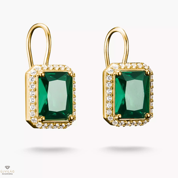 18 karátos aranybevonatú fülbevalók zöld, nyolcszögletű kövekkel