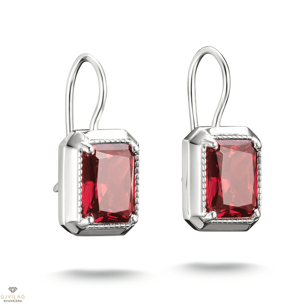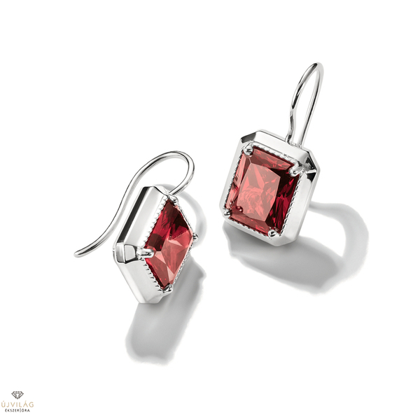 Elyndra ezüst csepp alakú fülbevalók vörös nyolcszögletű kövekkel