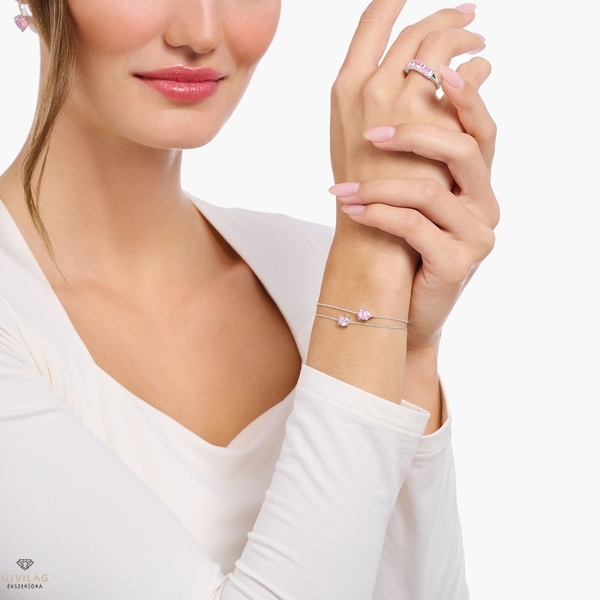 Egyszerű elegancia a csuklójára: ez a finom karkötő újrahasznosított ezüstből készült, és időtlen dizájnnal büszkélkedhet. Ez az elegáns kiegészítő minden megjelenést tökéletessé tesz - az üzleti öltözéket éppúgy, mint az alkalmi vagy ünnepi megjelenést. A körte alakú, rózsaszín cirkónia kő a karkötő legfőbb figyelemfelkeltője. A meghosszabbítható láncnak köszönhetően a hossza 16 és 19 cm között állítható. Méretek: Magasság kb. 9,5 mm; Szélesség kb. 7 mm; Vastagság kb. 1 mm.