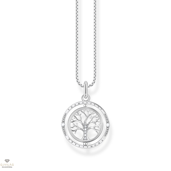A természet ihlette: A Tree of Love dizájnú medállal ellátott nyaklánc az élet és a szerelem egyensúlyát jelenti. A kivágott, életfa motívumú medál igényesen kidolgozott, fehér cirkónia kövekkel kirakott, saját tengelye körül forgatható. A külső gyűrűt THOMAS SABO metszet díszíti. Az elülső és a hátsó díszek gazdagon részletezettek, így a medál mindkét oldalán hordható. Az ékszerkészlet kiváló minőségű 925-ös sterling ezüstből készült. A medál levehető az állítható nyakláncról. A Szeretetfa ékszer kiváló ajándék kedvenc emberének. Magasság kb. 29,00 mm, Szélesség kb. 21,00 mm, Vastagság kb. 1,00 mm
