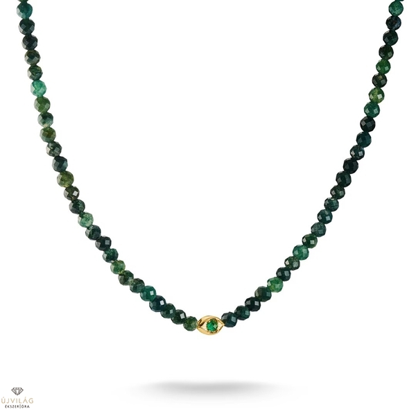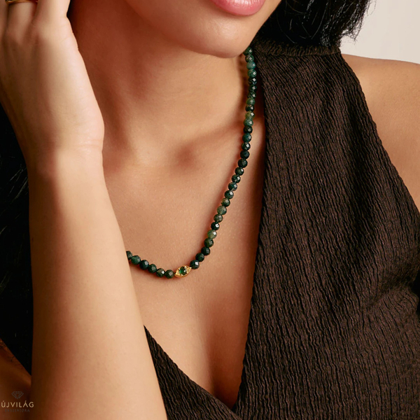 18 karátos aranybevonatú nyaklánc zöld moha-agát gyöngyökkel – Elyndra