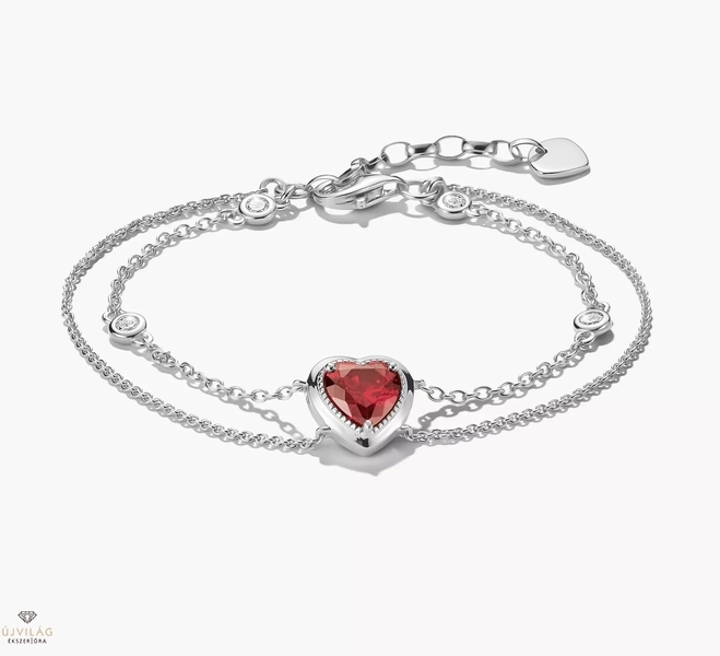 Ezüst, kétsoros karkötő vörös szív alakú kővel – Elyndra