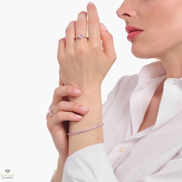 Ezüst tenisz karkötő rózsaszín cirkóniával