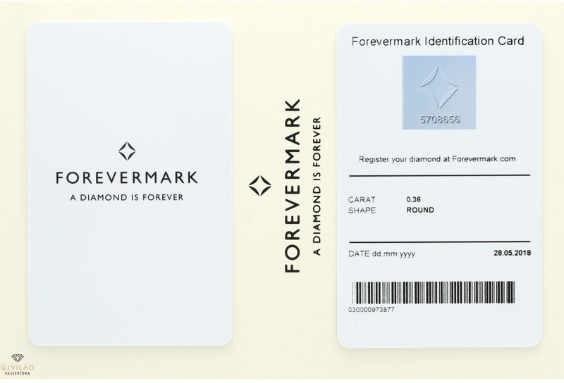 A Forevermark gyémántjainak szépségét és ritkaságát a kézi válogatás biztosítja; mindegyik gyémánt eredeti, kezeletlen és természetes. A világ összes gyémántjának alig 1 százaléka méltó a Forevermark névre. Ezenfelül minden Forevermark gyémánt felelős forrásból származik, körültekintően kiválasztott bányákból, melyek hasznot hoznak országuknak, az ott élő közösségeknek és embereknek is. A Forevermark minden egyes gyémántot végigkísér egész útján, és gondoskodik arról, hogy minden lépésnél a legszigorúbb üzleti, környezetvédelmi és társadalmi normák érvényesüljenek. Minden Forevermark gyémántba egy egyedi számot rejtenek, mely hármas ígéretet jelképez: a gyönyörű, ritka,felelős’forrásból származó gyémánt ígéretét. A szabad szemmel nem látható jelölés a Forevermark emblémájából és egy egyedi, csak Önnek szóló azonosító számból áll. Jöjjön el, tekintse meg a különleges mikroszkóp segítségével az Önnek érkezett gyémántot! A kép a termék fazonját mutatja, az ékszer formája a befoglalt gyémánt méretétől függően eltérhet. Kérésére az ékszert lefotózzuk és a fényképet elküldjük Önnek e-mailben.