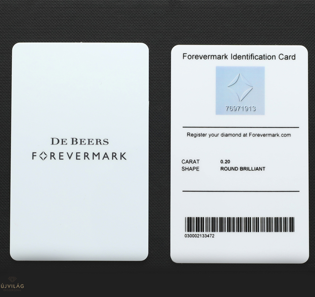 A Forevermark gyémántjainak szépségét és ritkaságát a kézi válogatás biztosítja; mindegyik gyémánt eredeti, kezeletlen és természetes. A világ összes gyémántjának alig 1 százaléka méltó a Forevermark névre. Ezenfelül minden Forevermark gyémánt felelős forrásból származik, körültekintően kiválasztott bányákból, melyek hasznot hoznak országuknak, az ott élő közösségeknek és embereknek is. A Forevermark minden egyes gyémántot végigkísér egész útján, és gondoskodik arról, hogy minden lépésnél a legszigorúbb üzleti, környezetvédelmi és társadalmi normák érvényesüljenek. Minden Forevermark gyémántba egy egyedi számot rejtenek, mely hármas ígéretet jelképez: a gyönyörű, ritka,felelős’forrásból származó gyémánt ígéretét. A szabad szemmel nem látható jelölés a Forevermark emblémájából és egy egyedi, csak Önnek szóló azonosító számból áll. Jöjjön el, tekintse meg a különleges mikroszkóp segítségével az Önnek érkezett gyémántot! A kép a termék fazonját mutatja, az ékszer formája a befoglalt gyémánt méretétől függően eltérhet. Kérésére az ékszert lefotózzuk és a fényképet elküldjük Önnek e-mailben.