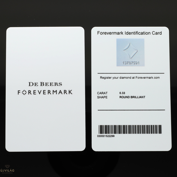 A Forevermark gyémántjainak szépségét és ritkaságát a kézi válogatás biztosítja; mindegyik gyémánt eredeti, kezeletlen és természetes. A világ összes gyémántjának alig 1 százaléka méltó a Forevermark névre. Ezenfelül minden Forevermark gyémánt felelős forrásból származik, körültekintően kiválasztott bányákból, melyek hasznot hoznak országuknak, az ott élő közösségeknek és embereknek is. A Forevermark minden egyes gyémántot végigkísér egész útján, és gondoskodik arról, hogy minden lépésnél a legszigorúbb üzleti, környezetvédelmi és társadalmi normák érvényesüljenek. Minden Forevermark gyémántba egy egyedi számot rejtenek, mely hármas ígéretet jelképez: a gyönyörű, ritka,felelős’forrásból származó gyémánt ígéretét. A szabad szemmel nem látható jelölés a Forevermark emblémájából és egy egyedi, csak Önnek szóló azonosító számból áll. Jöjjön el, tekintse meg a különleges mikroszkóp segítségével az Önnek érkezett gyémántot! A kép a termék fazonját mutatja, az ékszer formája a befoglalt gyémánt méretétől függően eltérhet. Kérésére az ékszert lefotózzuk és a fényképet elküldjük Önnek e-mailben.