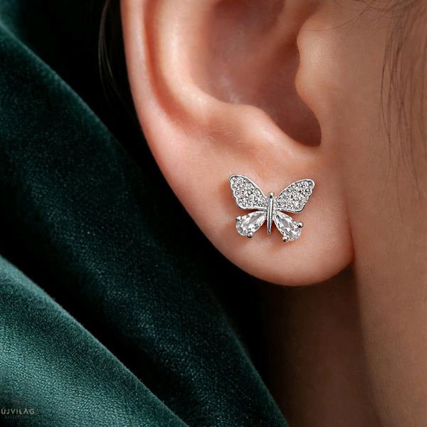 Ezüst pillangó fülbevaló - 02107-355