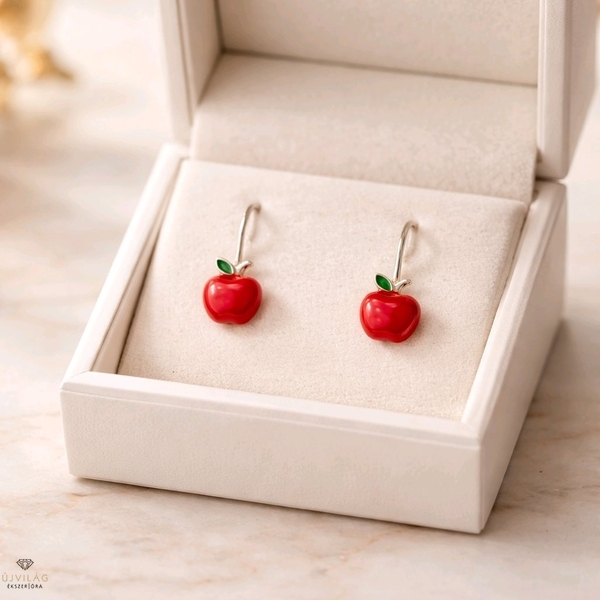 Ezüst piros alma gyerek fülbevaló - 02203-47