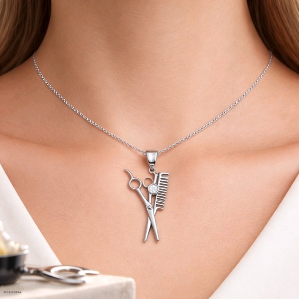 Ezüst fésű-olló medál - 09149-7