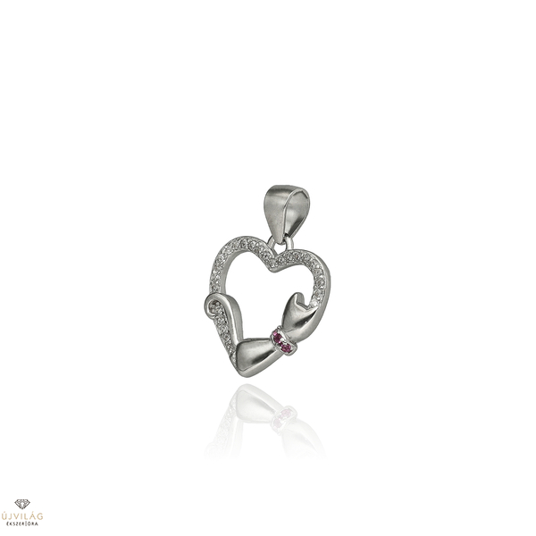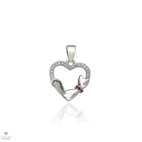 Ezüst szív cicával medál - 09139-48